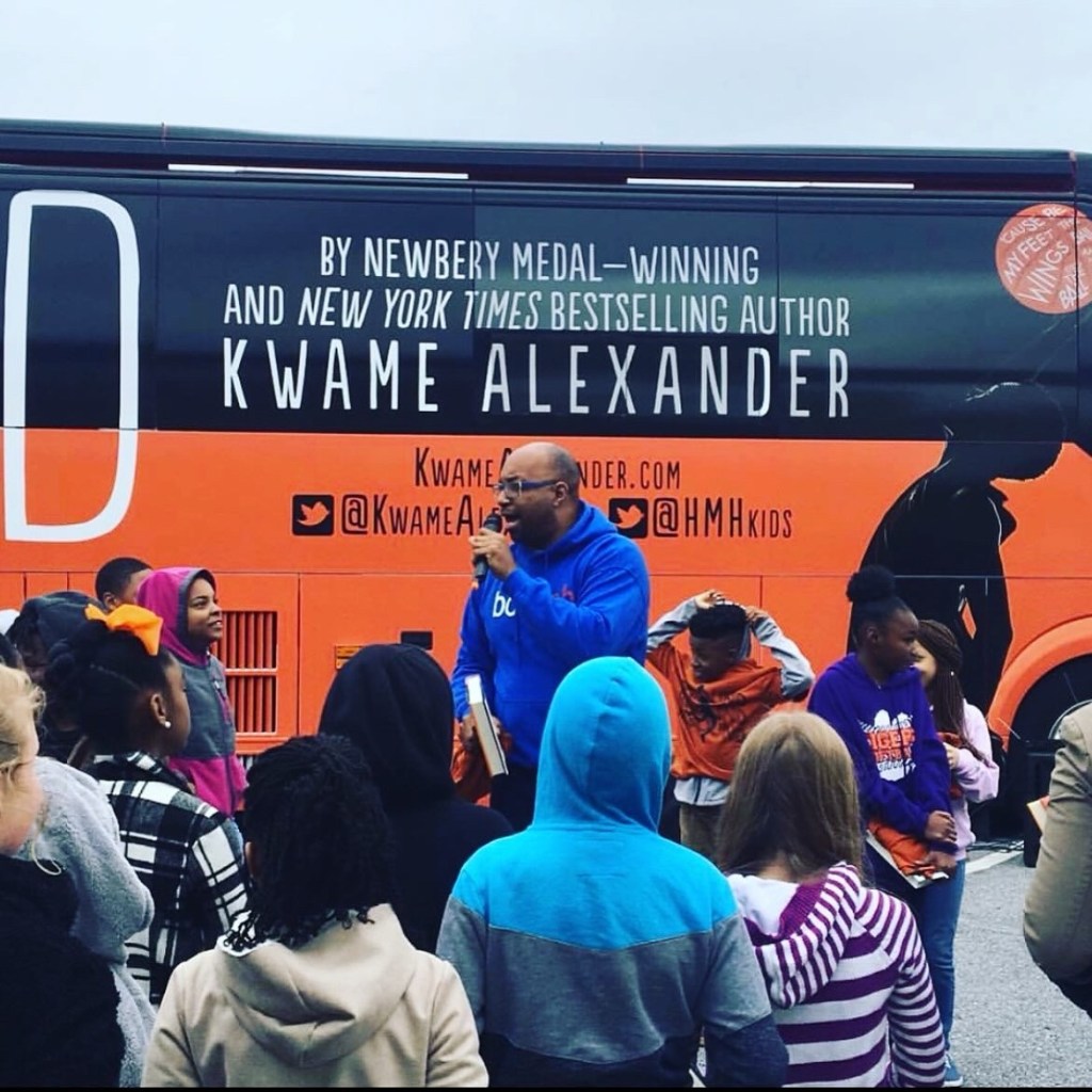 Bringing Mr. Kwame Alexander to our school was a big hit! He pulled up in a huge bus and our kids were so excited. A star came to our school ⭐️! We couldn’t keep his books on the shelves! That’s what it’s about! The fact that he gave his time meant so much to our students!